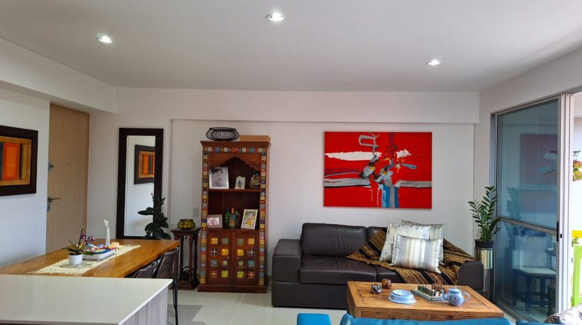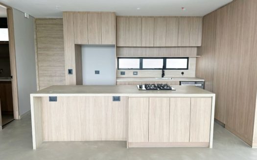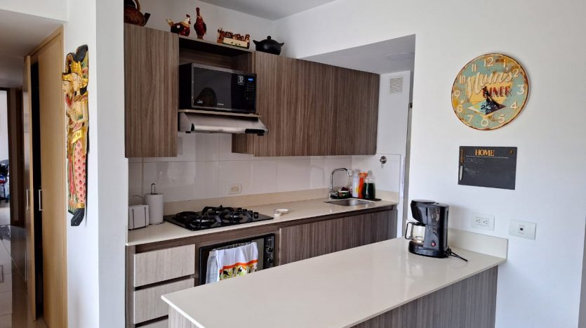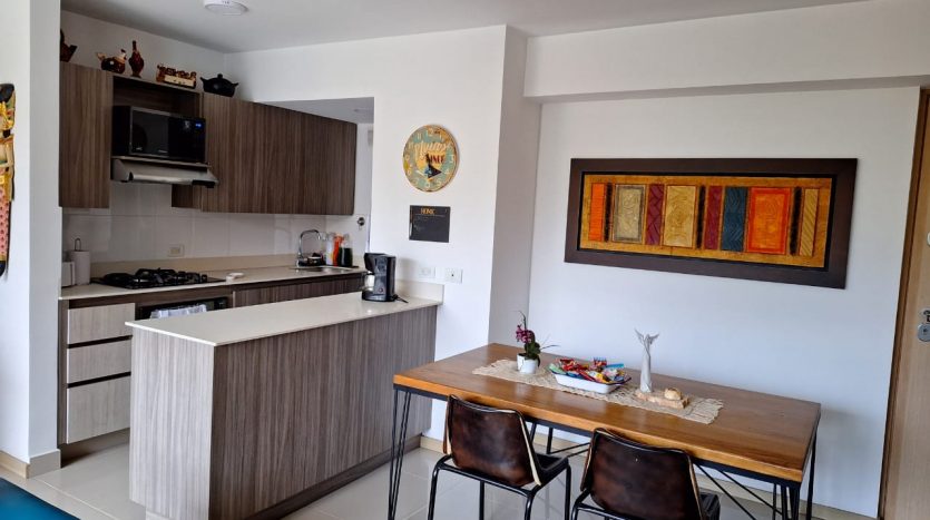 Cocina con concepto abierto, baño social y baño del servicio, anexo a la zona de ropas. Closet de linos. Balcón con linda vista a verde, nunca le da poniente.