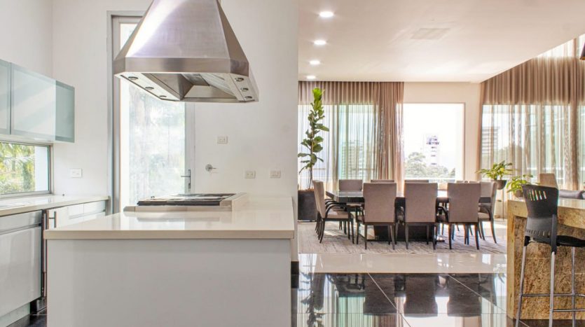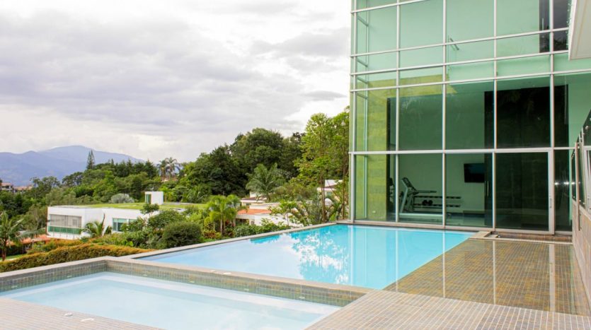 Todos los espacios de la vivienda cuentan con unas bonitas vistas a Medellín y al jardín con la piscina climatizada