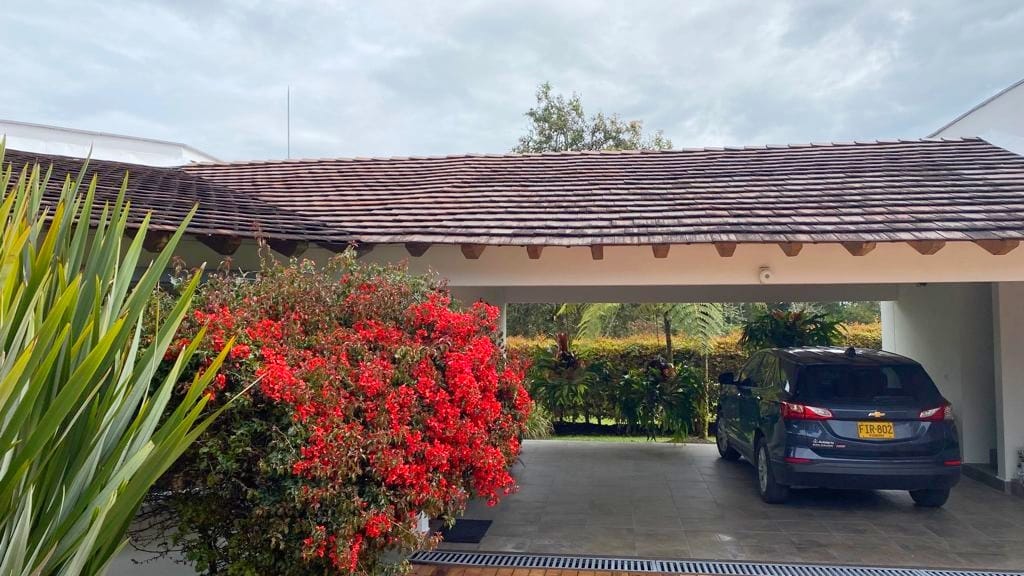 Parqueadero con acceso independiente a la casa. 2 parqueaderos cubiertos y otros 5 descubiertos.