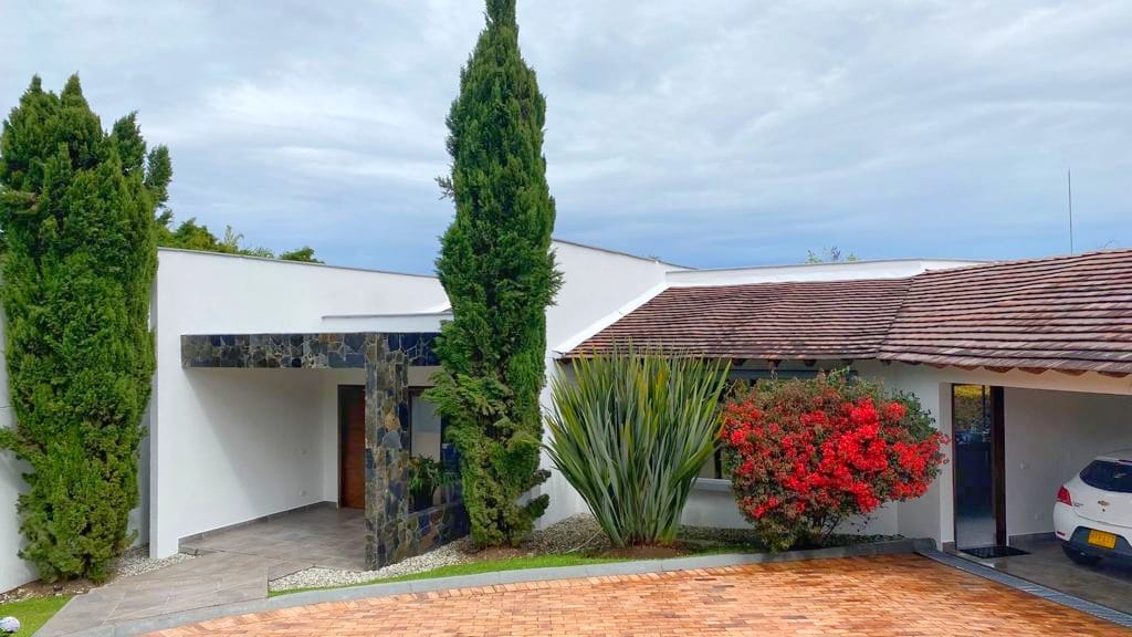 Hermosa casa en venta en Llano grande -Rionegro. En un solo nivel. Hermosos jardines, lote plano, absoluta privacidad y sin registro.