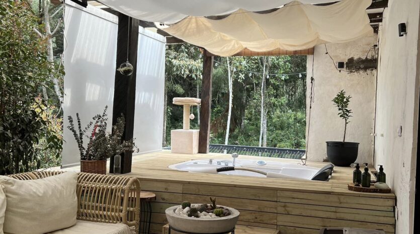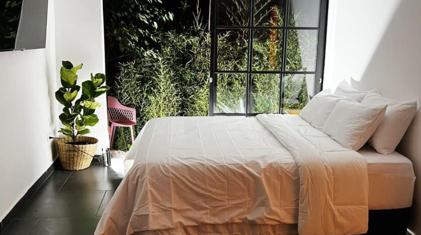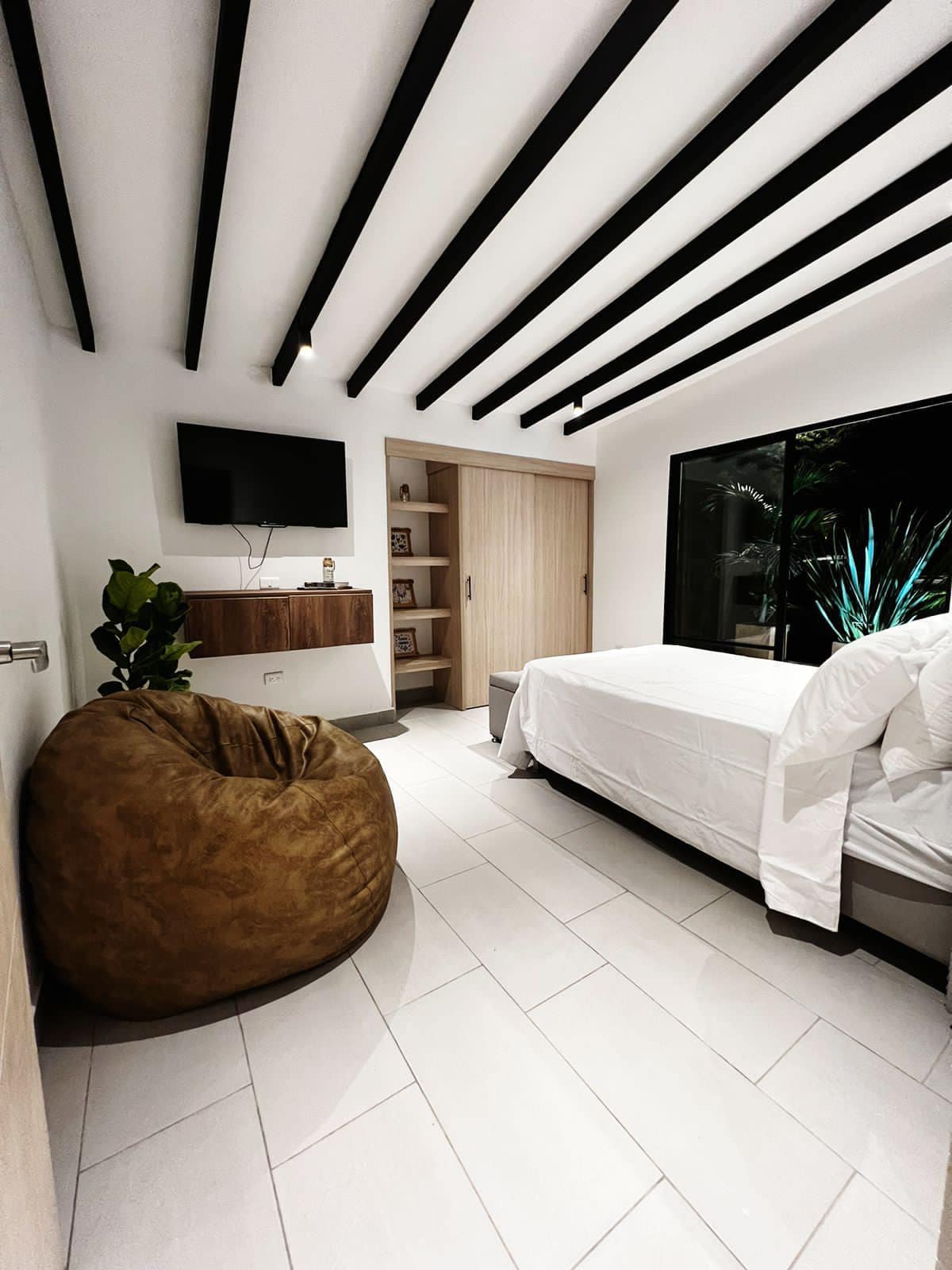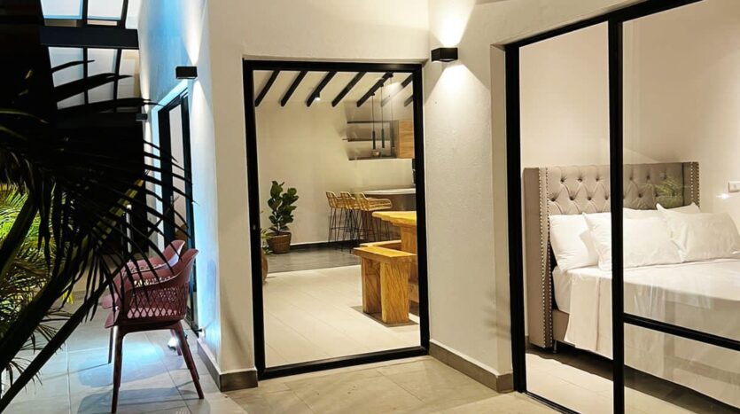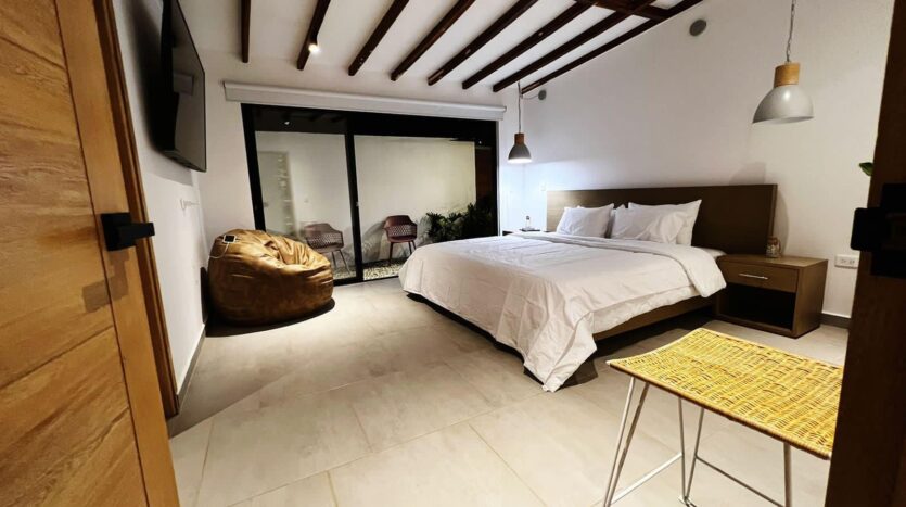 1 Habitación. Espacios abiertos. Cocina moderna. Sala comedor. 1 Baño Social. Terraza con Jacuzzi y zona para asados. Zona de Ropas. Cuarto útil. Parqueadero