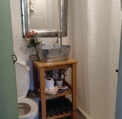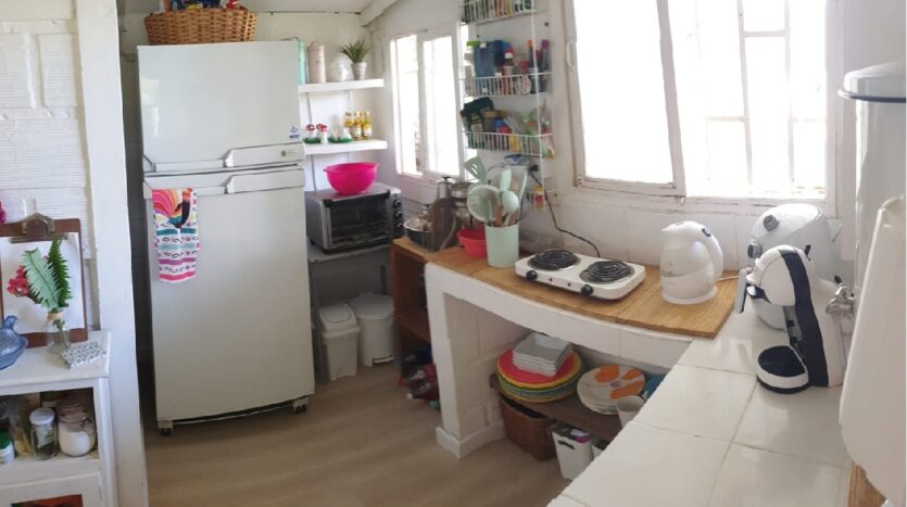 Tiene 2 niveles, 2 habitaciones, 2 baños uno de ellos con bañera, vestidor, cocina sencilla, parqueadero para 6 carros.