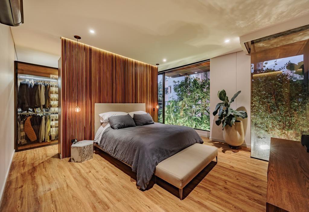 Alcoba principal con baño y vestidor, alcoba auxiliar con baño y vestidor,