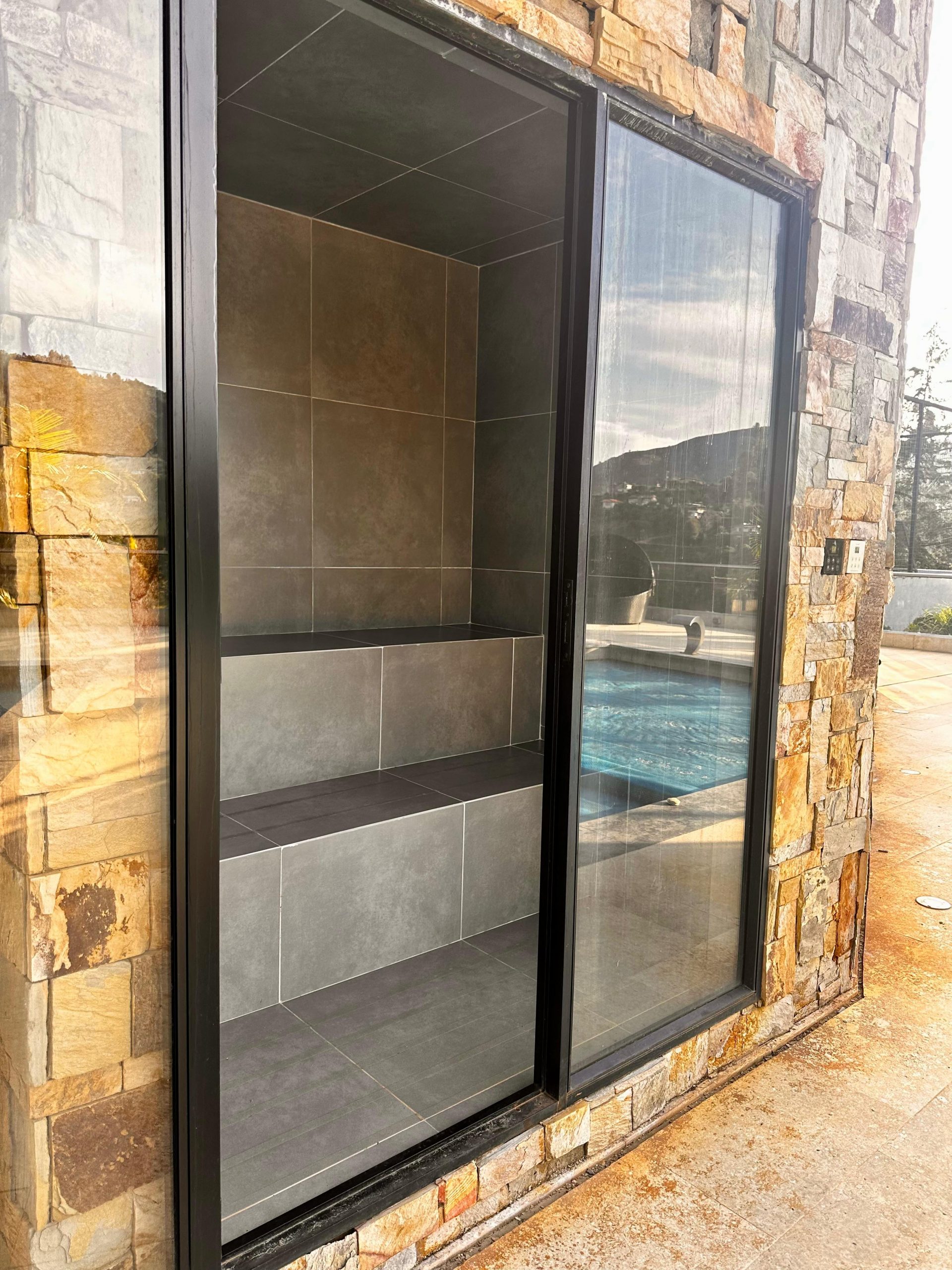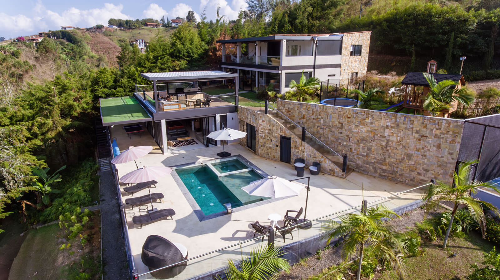 - Piscina y jacuzzi en piedra natural, con calefacción