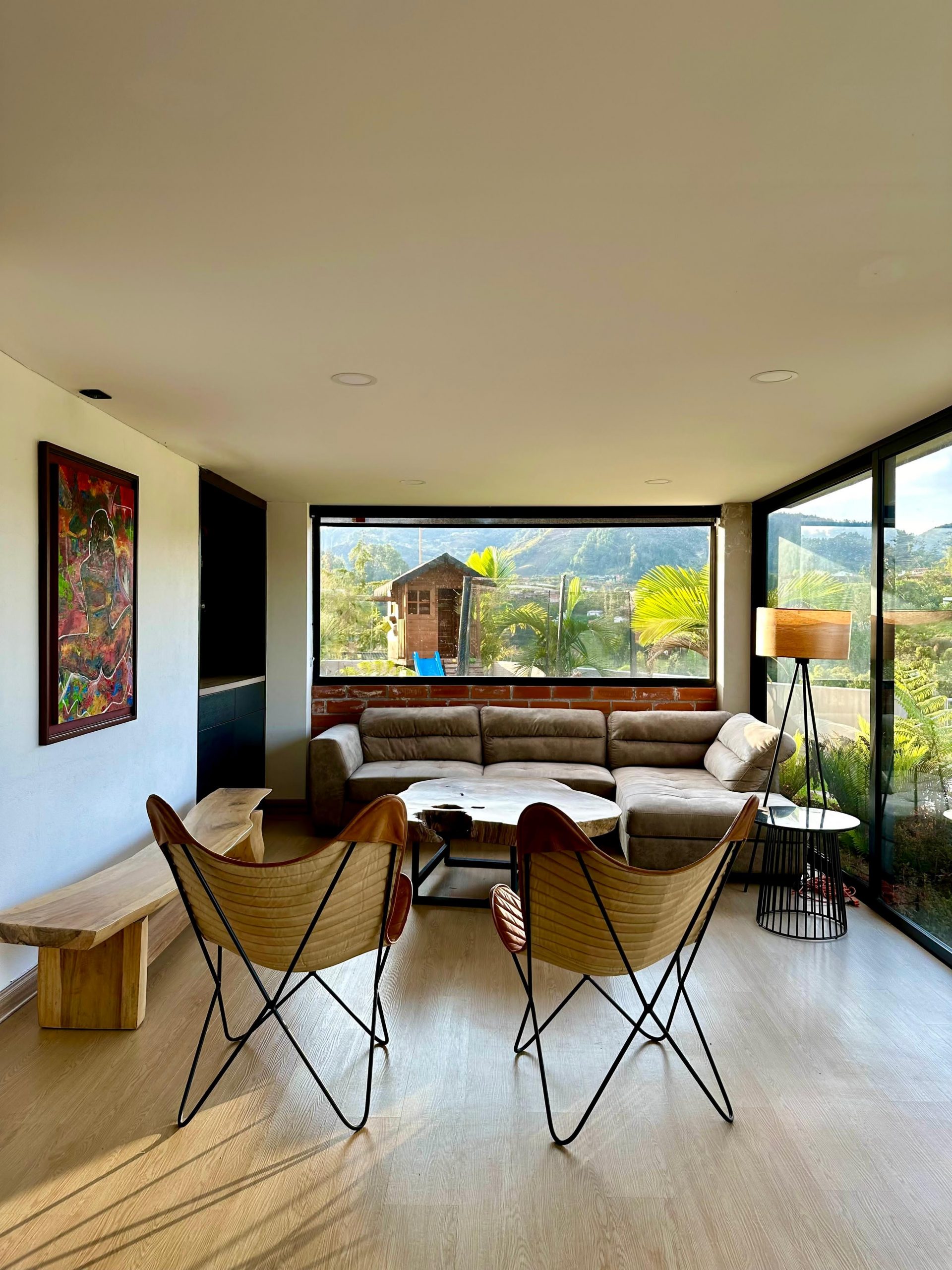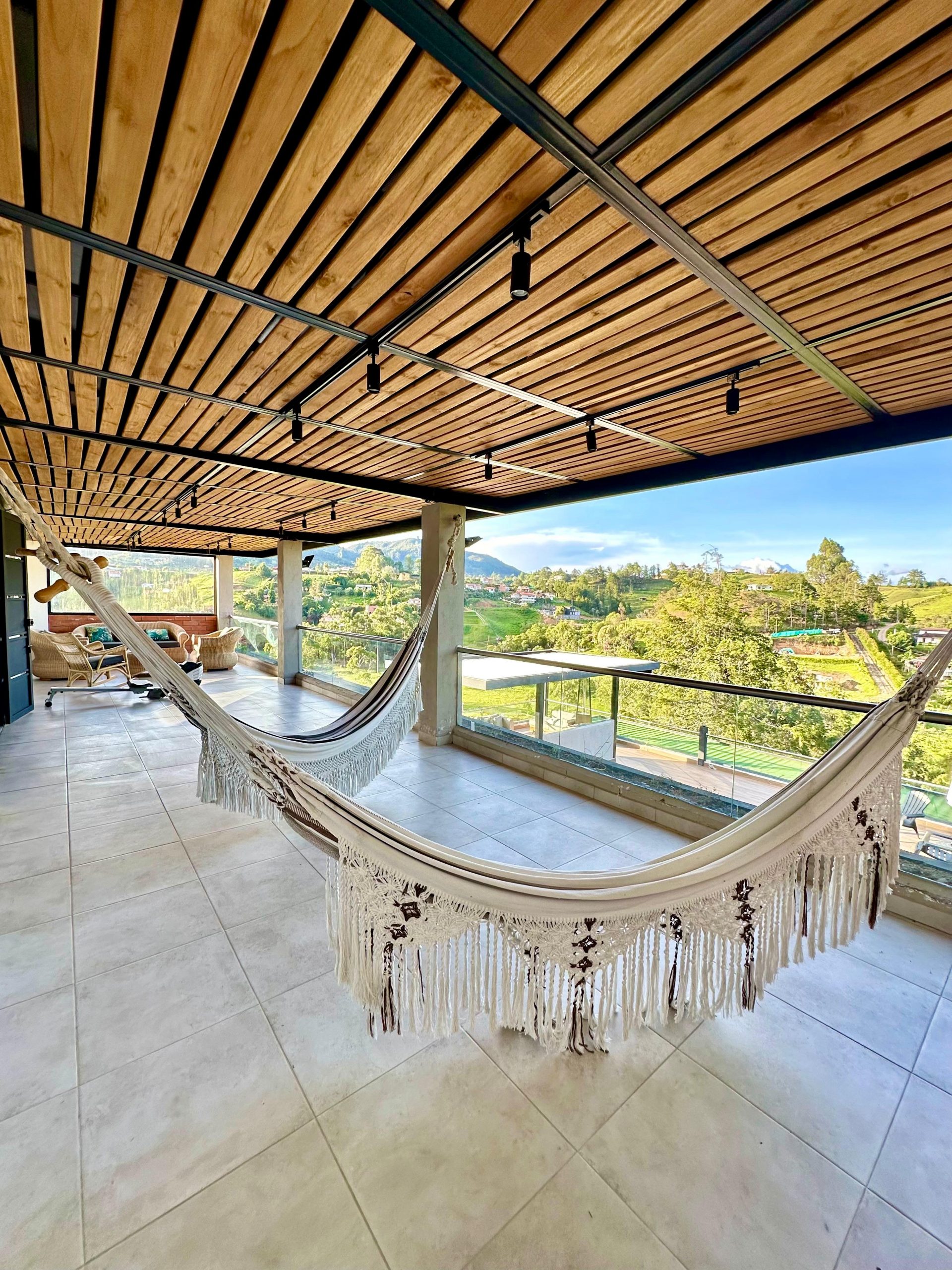 Habitación principal con baño privado y vestidor, 3 habitaciones auxiliares, 1 baño con ducha, sala TV, terraza cubierta.